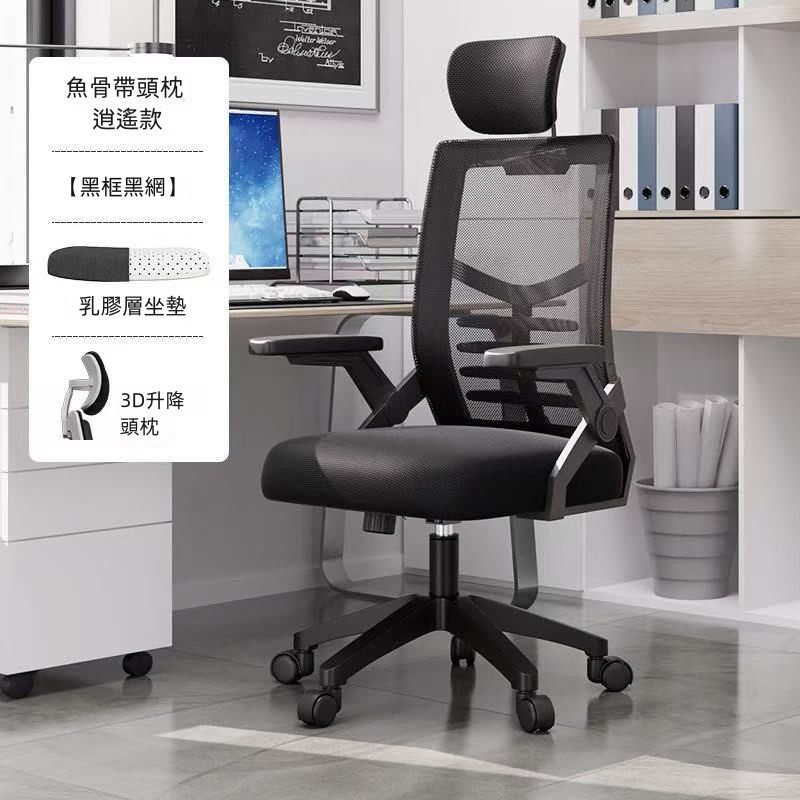 (免費送貨包安裝)黑網帶頭枕乳膠坐墊普通款辦公椅子/電腦椅/會議室椅/職員椅 CC-A247