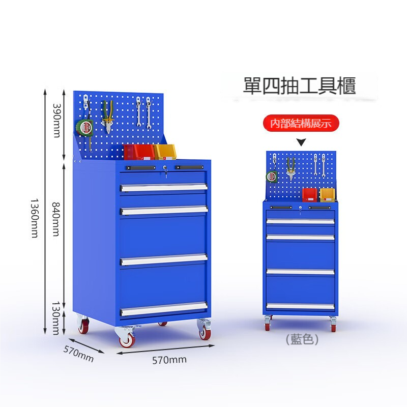 產品名稱 : 藍色單四抽高承重移動工具車/車間重型櫃/五金工具箱(不含掛勾)