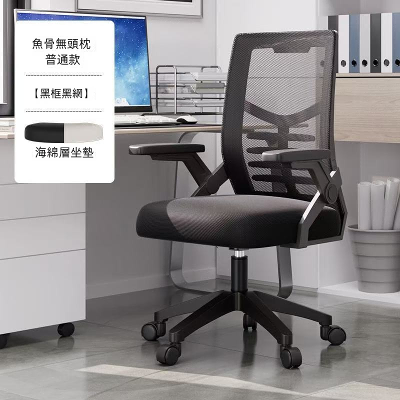 產品名稱 :黑網無頭枕海綿坐墊普通款辦公椅子/電腦椅/會議室椅/職員椅