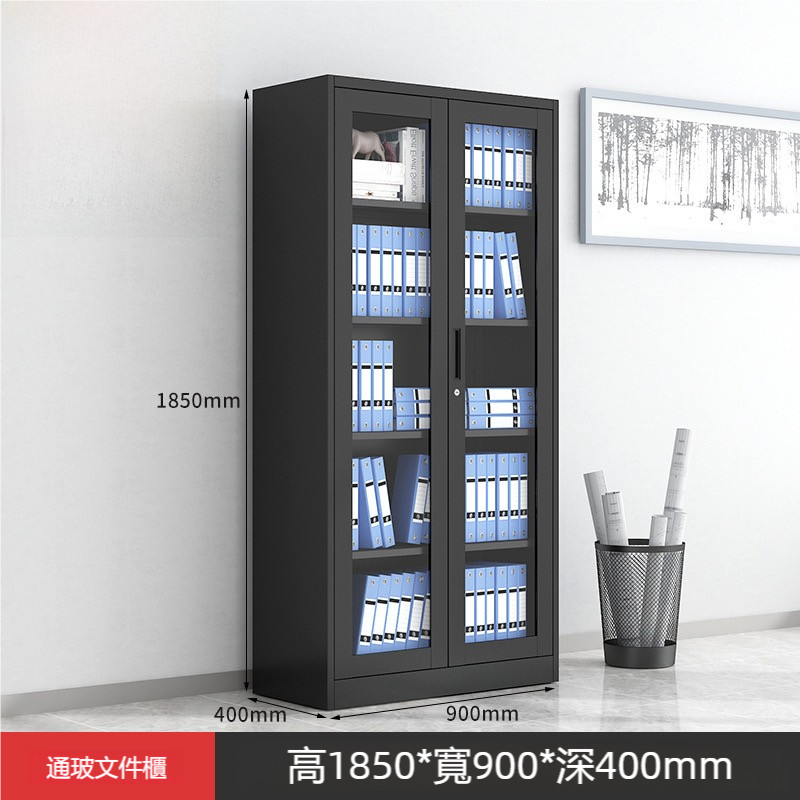櫃體尺寸為高1850mm、寬900mm、深400mm,提供充足的存儲空間,適合存放各類文件、資料和辦公用品。