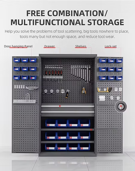 重型工具櫃是一款高容量的工具櫃,用於存放和組織各種類型和大小的工具和配件。這款工具櫃提供了完全可定制的選項,以適應任何空間。您可以選擇框架材料,從冷軋鋼到不銹鋼,以及您喜歡的厚度。抽屜尺寸也可以定制,以存放各種形狀和大小的工具。所有我們的櫃子內部都有鍍鋅處理,以防止生鏽和腐蝕。通過這些可定制的、具有保護功能的元素,為任何車庫提供了量身定制的存儲解決方案。如果您需要根據自己的規格建造優質的工具櫃和存儲解決方案,請選擇RUNRISE。憑藉超過26年的經驗,我們為客戶提供最佳的工具櫃設計和製造,我們有信心能夠超越您的期望。