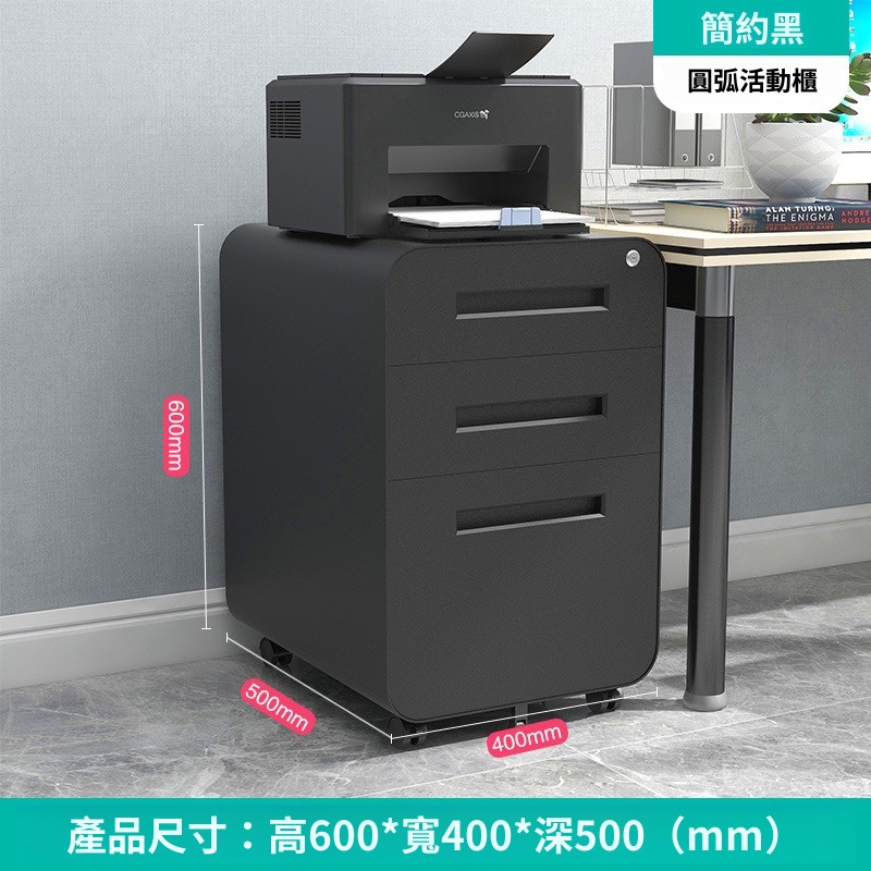 產品名稱 :黑色圆弧拉手活動櫃/儲物櫃/抽屜矮櫃/桌下移動文件櫃