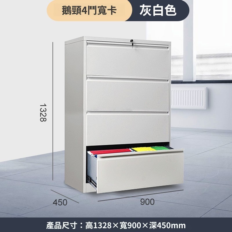 簡約設計,高效存儲!這款灰白色四抽寬卡文件櫃以其簡約的設計和高效的存儲功能,成為現代辦公環境的理想選擇。專為大量文件存儲而設計,確保您的辦公空間整潔有序。