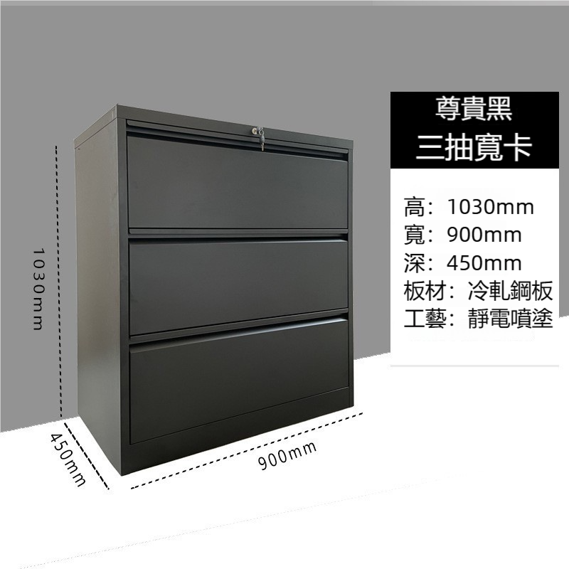 簡約設計,高效存儲!這款黑色三抽寬卡文件櫃以其簡約的設計和高效的存儲功能,成為現代辦公環境的理想選擇。專為大量文件存儲而設計,確保您的辦公空間整潔有序。