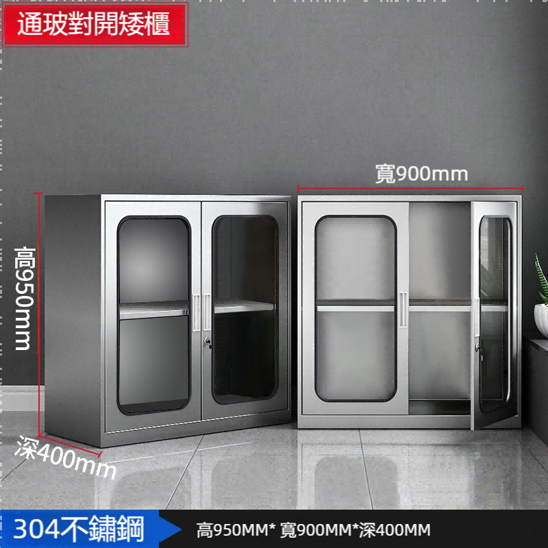 這款不鏽鋼玻璃對開門資料櫃專為現代辦公室設計,結合了實用性與美觀性。其高950mm、寬900mm、深400mm的尺寸,提供了充足的存儲空間,同時保持了優雅的外觀。採用高品質304不鏽鋼和強化玻璃製造,確保耐用性和安全性。