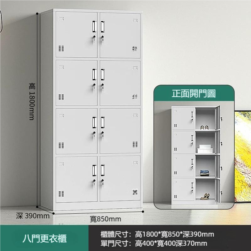這款八門帶鎖鋼制更衣櫃專為健身房、運動中心和員工更衣室設計,提供高效且安全的存儲解決方案。其八門設計和寬敞的單門尺寸使多人可以同時使用,適合存放衣物、鞋類和其他個